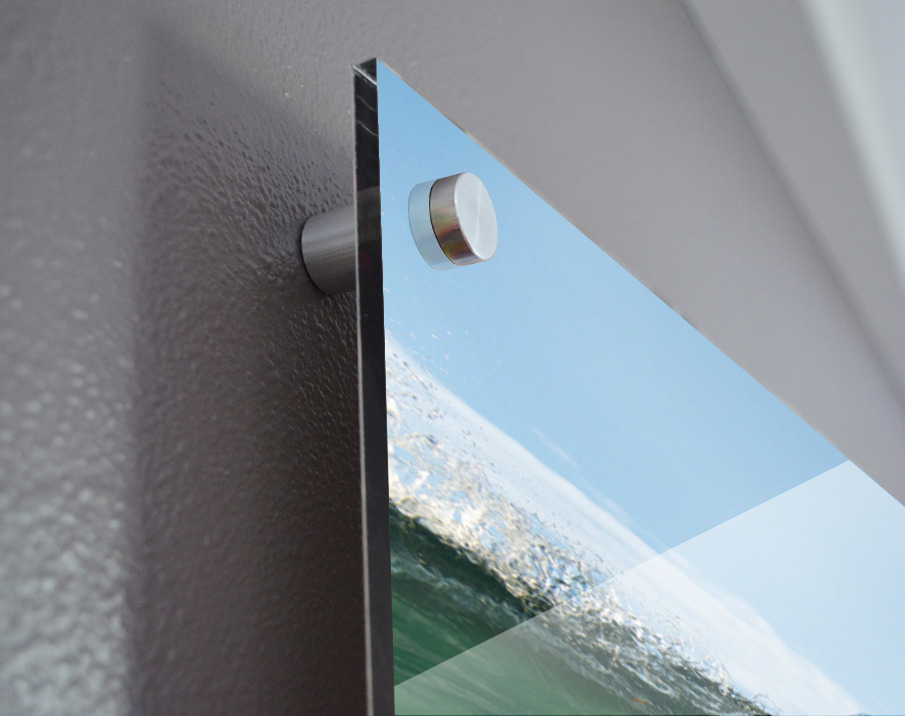Printed to the edge - Ready to hang - provided with 4 premium polished aluminum stand off ( wall screws and mounting hardware provided )