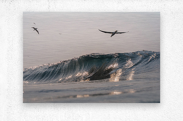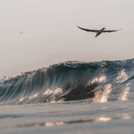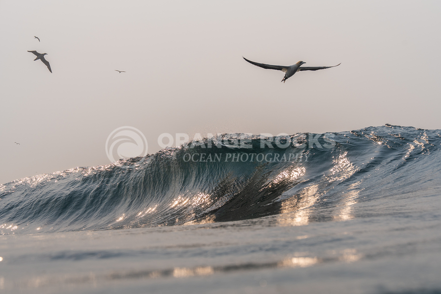 This morning was was quite interesting. I was in the ocean during July which is around sardine season. When I first got in there was not much activity - But the waves were good and so was the morning light. After awhile I started seeing birds dive in the distance which made me think there must be sardines there. And slowly but surely the birds got closer and closer. Until I noticed a Cape Granite flying toward me . Almost looked like it was surfing the wave. This was taken as soon as he noticed me and started ascending up. Real special moment.