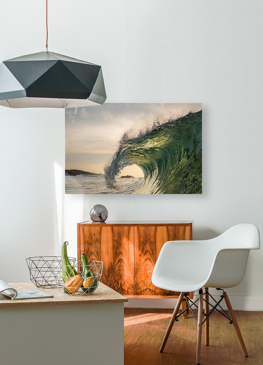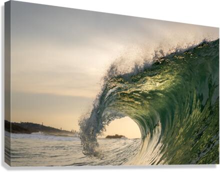 Being in the ocean with a camera is the only way to capture moments like this. The wave illuminated by the rising sun, curls over the rocks in the background. The curl of the wave draws you in with its uniqueness.
